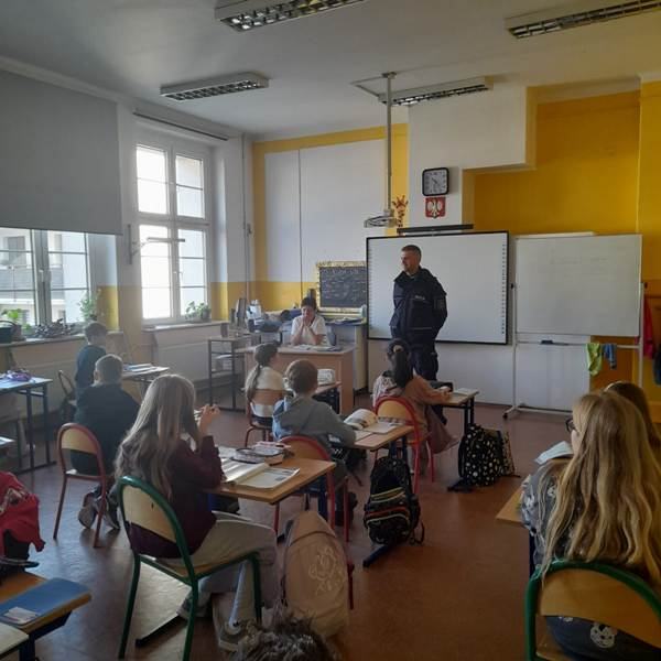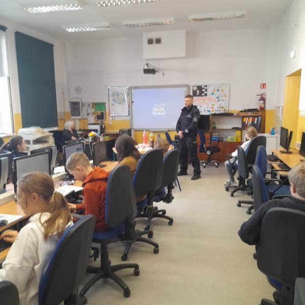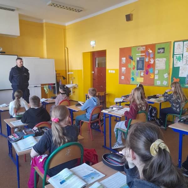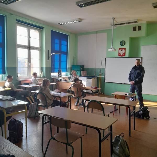 W dniu 28.10.2024 r. klasy 3a, 3b, 4a, 5a, 6a odwiedził p.asp. Adam Dudka, funkcjonariusz w Komisariacie V Policji w Gliwicach. Pan dzielnicowy przeprowadził z uczniami pogadanki w temacie „Niszczenia mienia i konsekwencji z tego wynikających”. Dziękujemy za pomoc i liczymy na dalszą, efektywną współpracę 🙂