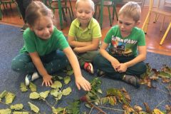 Dzieci słuchały ciekawych opowiadań o drzewach, wykonały różnymi technikami mnóstwo prac plastycznych, uczestniczyły w zabawach i zajęciach, podczas których nie tylko poznawały i rozróżniały różne gatunki drzew, ich owoce i nasiona, ale też uczyły się liczyć, tworzyć rytmy z wykorzystaniem darów jesieni, poznawać zjawiska przyrodnicze (np. opadanie liści z drzew), właściwie korzystać z dóbr przyrody, układały historyjki, rozwiązywały zagadki, śpiewały i tańczyły. O szacunku dla drzew i wyjątkowym świętowaniu tego dnia świadczyły zielone stroje przedszkolaków. Wszystkie grupy tego dnia wybrały się na spacer, aby obserwować przyrodę oraz wielobarwność otaczającej nas jesieni i zrobiliśmy wspólne pamiątkowe zdjęcie.