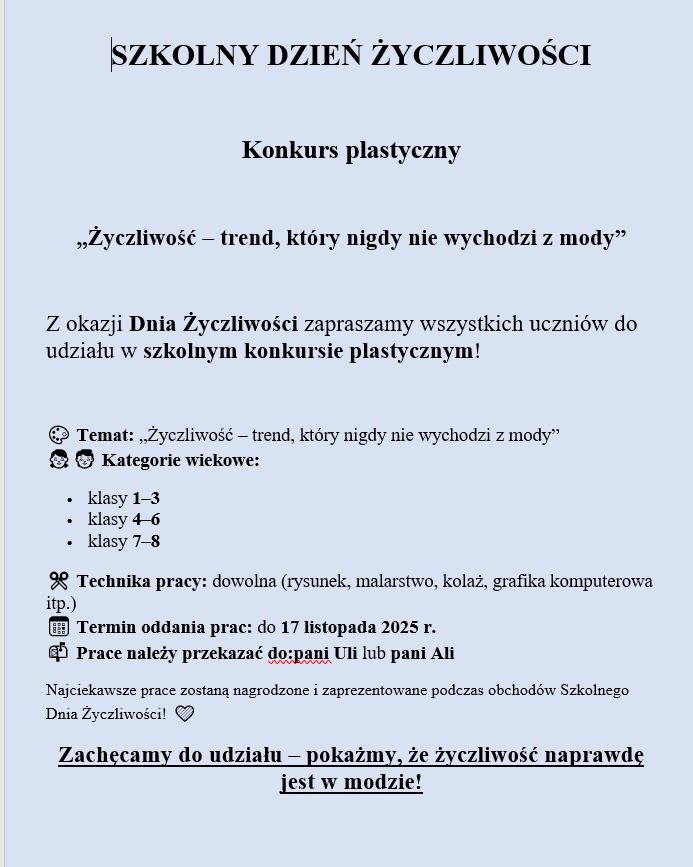 Najciekawsze prace zostaną nagrodzone i zaprezentowane podczas obchodów Szkolnego Dnia Życzliwości! 💛