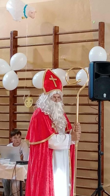 Plan wydarzenia obejmował dwie części – tę dla przedszkola oraz drugą, dla dzieci szkolnych. Na uczestników czekało wiele atrakcji i niezapomnianych wrażeń. Oprócz występów naszych Gości towarzyszyły nam konkursy i piosenki. Była też niespodzianka – wizyta Świętego Mikołaj – biskupa, w otoczeniu aniołów i świętych – św. Józefa, św. Franciszka z Asyżu, św. Jana Pawła II i św. Siostry Faustyny Kowalskiej.