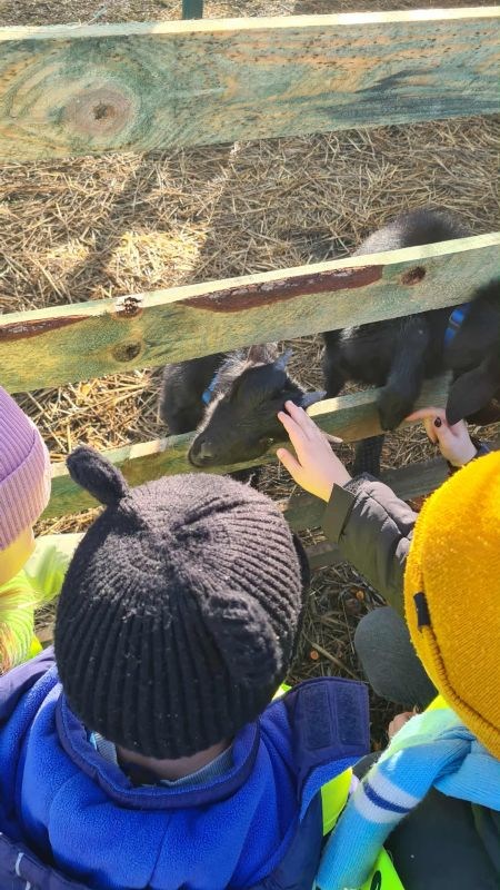 Na początku przedszkolaki odwiedziły mini zoo, w którym mogły z bliska zobaczyć i pogłaskać kozy, baranki oraz króliczki. Dzieci z ogromnym zainteresowaniem obserwowały zwierzątka, dowiadując się, czym się żywią i jak należy o nie dbać.