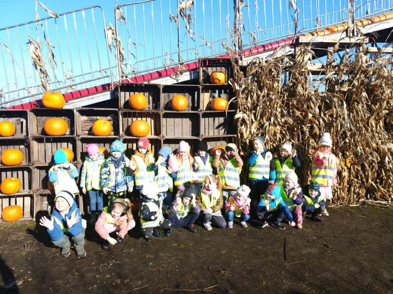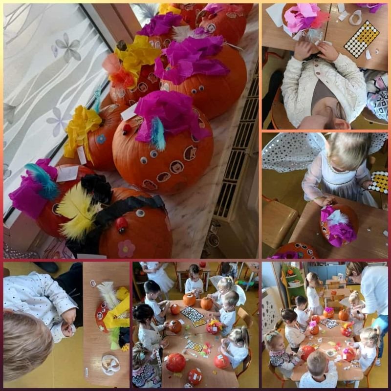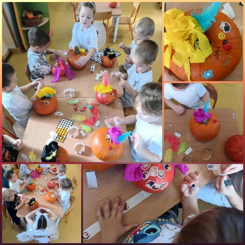 Tego dnia dzieci z całego przedszkola ozdabiały dynie, tworząc barwne jesienne dekoracje. Ponadto grupy „Żabki” i „Misie” wybrały się na wycieczkę do Miasteczka Dyni, gdzie czekało na nie wiele jesiennych atrakcji.