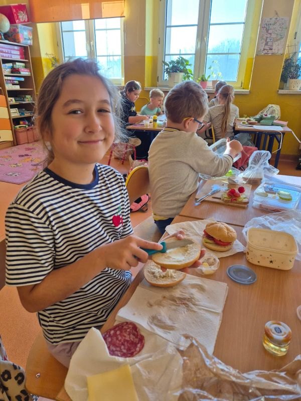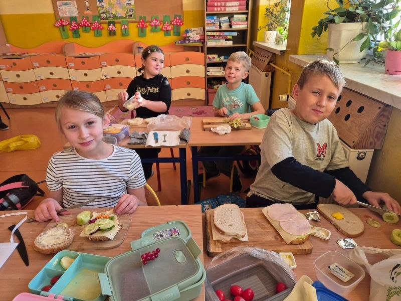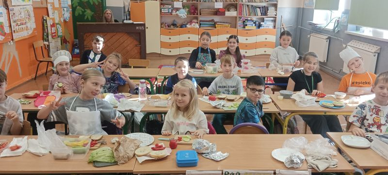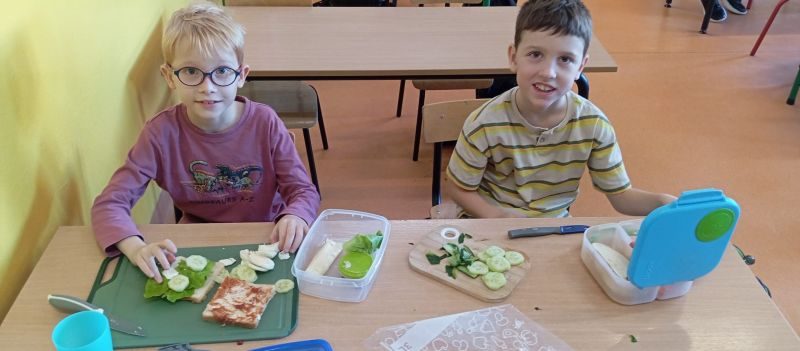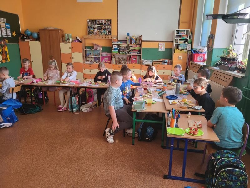 Wszystkie dzieci przygotowały przepyszne kanapki, sałatki, surówki oraz soki, które degustowały podczas uroczystego śniadania.
