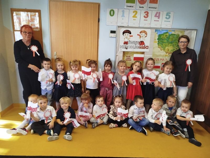 W Naszym przedszkolu uroczyście obchodziliśmy Narodowe Święto Niepodległości. Dzieci z zaangażowaniem przystąpiły do ogólnopolskiej akcji „Szkoła do Hymnu”, podczas której o godzinie 11:11 wspólnie odśpiewały „Mazurek Dąbrowskiego”. W ten sposób najmłodsi wyrazili swój patriotyzm i szacunek do ojczyzny.