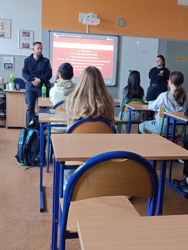 Zajęcia przeprowadzili pracownicy Straży Miejskiej w Gliwicach – pani apl. Nikola Wiśniewska, p.str. Jacek Stochmiał oraz p. str. Adam Kula. Dziękujemy za współpracę. Kolejne inicjatywy przed nami 🙂