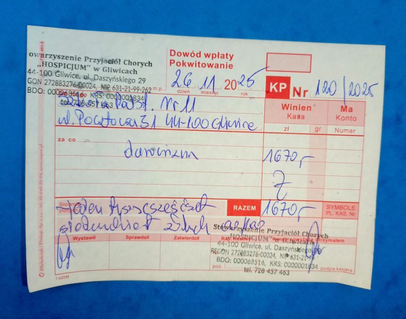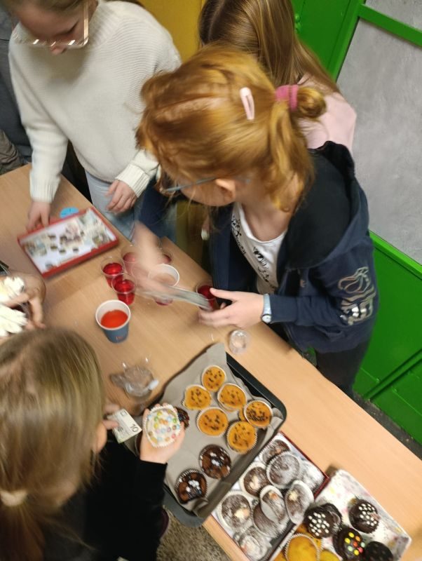 Wolontariusze przygotowali i sprzedawali przepyszne babeczki, kolorowe galaretki oraz uśmiechnięte breloczki, które cieszyły się dużym zainteresowaniem wśród uczniów i pracowników szkoły. Dzięki zaangażowaniu młodzieży oraz hojności kupujących udało się zebrać środki (1670 zł), które zostały przekazane na Hospicjum Miłosierdzia Bożego w Gliwicach.