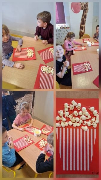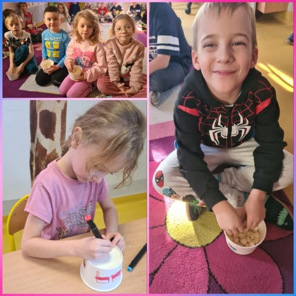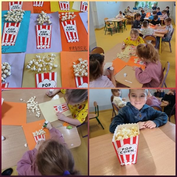 19 stycznia w naszym przedszkolu obchodziliśmy Dzień Popcornu – było smacznie, ciekawie i bardzo kreatywnie. Na początku zajęć dzieci poznały ciekawostki na temat popcornu – dowiedziały się z czego powstaje, jak „pęka ” ziarenko 🌽, oraz w jakich okolicznościach jest najczęściej spożywane 😋. Na zakończenie każda grupa wykonała kreatywne prace plastyczne. To był dzień pełen zabaw, radości i chrupiących wrażeń!