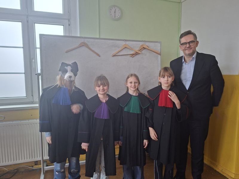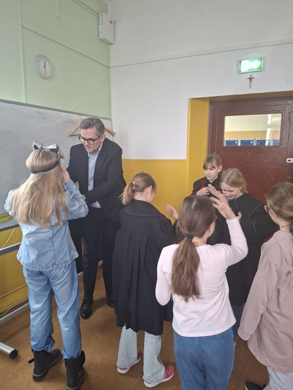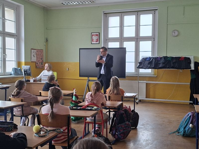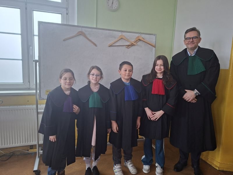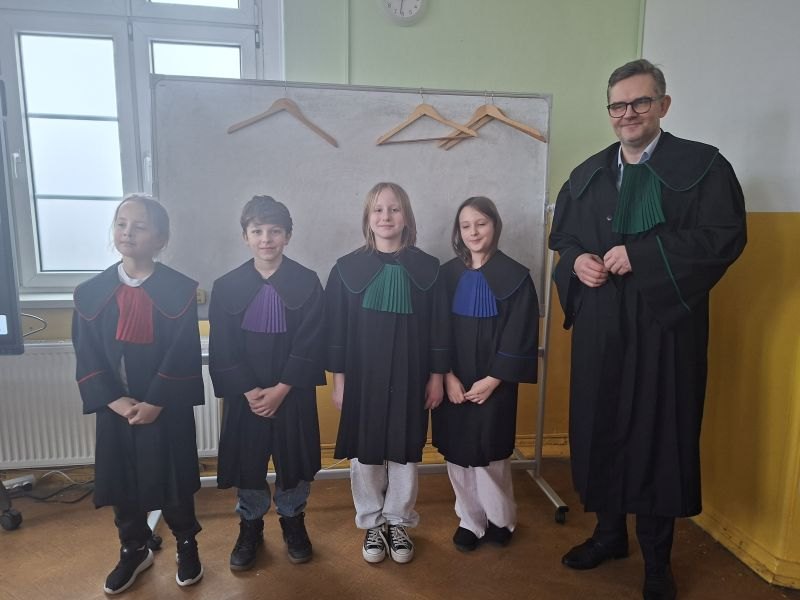 23 stycznia 2026 roku naszą szkołę odwiedził Pan mecenas Robert Dopierała z fundacji ” Było Sobie Prawo”. Pan mecenas spotkał się z naszymi czwartoklasistami, którym przybliżył tematykę związana z prawem. Uczniowie zostali uwrażliwieni na potrzebę życia w zgodzie z regułami oraz na potrzebę stanowienia prawa w taki sposób, by było ono zrozumiałe dla wszystkich. W trakcie spotkania uczniowie mogli też przymierzyć togi, a na koniec otrzymali tomik wierszy „Wiersze o prawie dla dzieci” autorstwa naszego gościa.