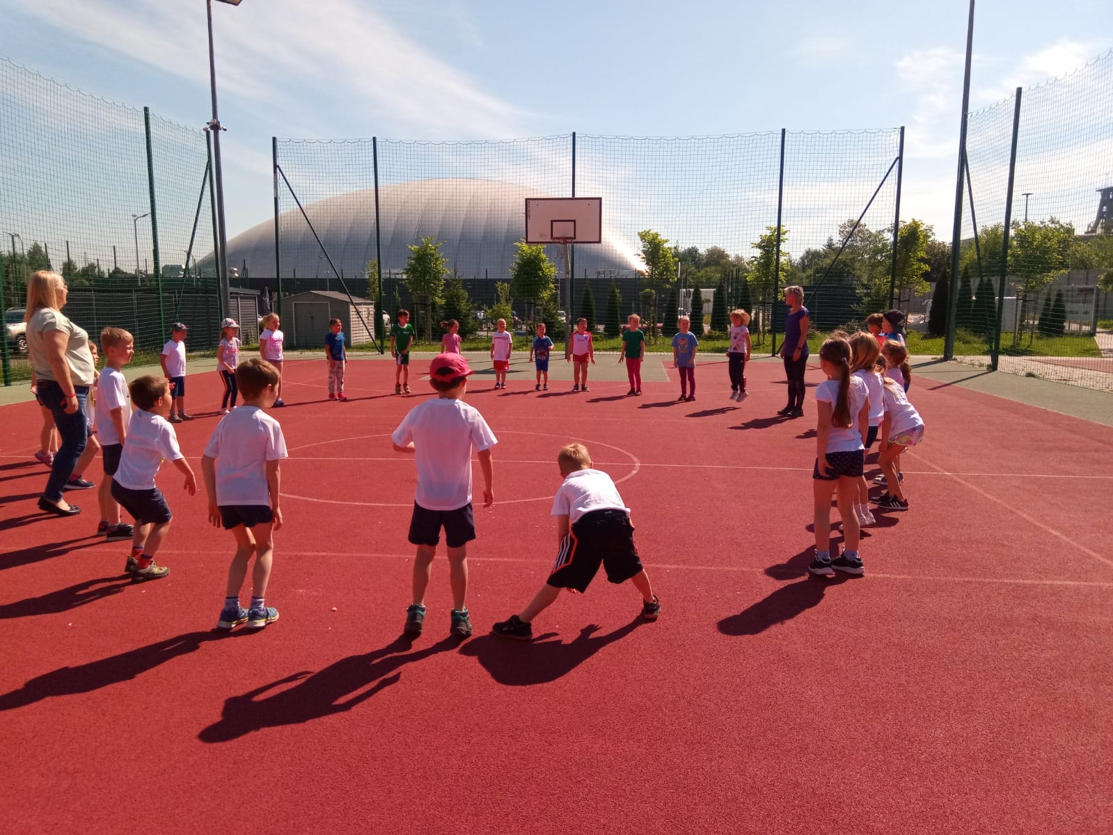 Dnia 31 maja na boisku szkolnym odbyły się zawody sportowe pod hasłem „Sport i zabawa to zawsze dobra sprawa”, gdzie przedszkolaki świetnie się sprawdziły jako młodzi sportowcy. Gościły u nas przedszkolaki z Bojkowa 🙂 Wszyscy zostali przywitani i razem wzięli udział w rozgrzewce, która była przygotowaniem do sportowej zabawy. Każda drużyna liczyła 10 zawodników, tak aby wszyscy mieli równe szanse. Zawodnicy startowali w kilkunastu konkurencjach zawierających ćwiczenia na równowagę, celność, szybkość i zwinność. Jednakże pamiętaliśmy, że nie chodziło o wyniki, ale ważniejsze było samo uczestnictwo i wspólna zabawa. Wspaniale sprawdziły się również przedszkolaki jako kibice, którzy dopingowali wszystkich młodych sportowców. Zawody budziły wśród dzieci wielkie emocje. Na koniec wszyscy otrzymali pamiątkowe medale oraz dyplomy za udział w zawodach sportowych dla grup.
