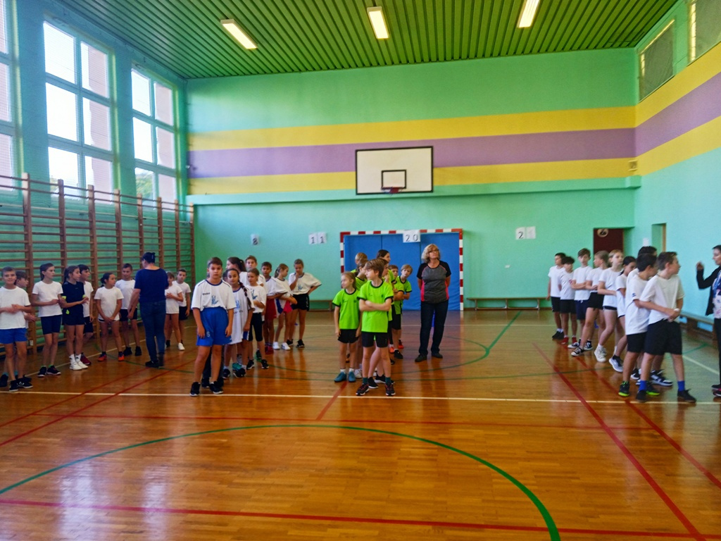 Dnia 20 października 2022 r. nasza reprezentacja z klasy 5 brała udział w zawodach sportowych w Turnieju Gier i Zabaw w SP 21. Rywalizowaliśmy w różnych konkurencjach m.in. zbijany w kole na czas, wyścigi rzędów z elementami kozłowania, przewrotu w przód, skoków, rzutów do celu. Mimo dużego zaangażowania zajęliśmy IV miejsce.