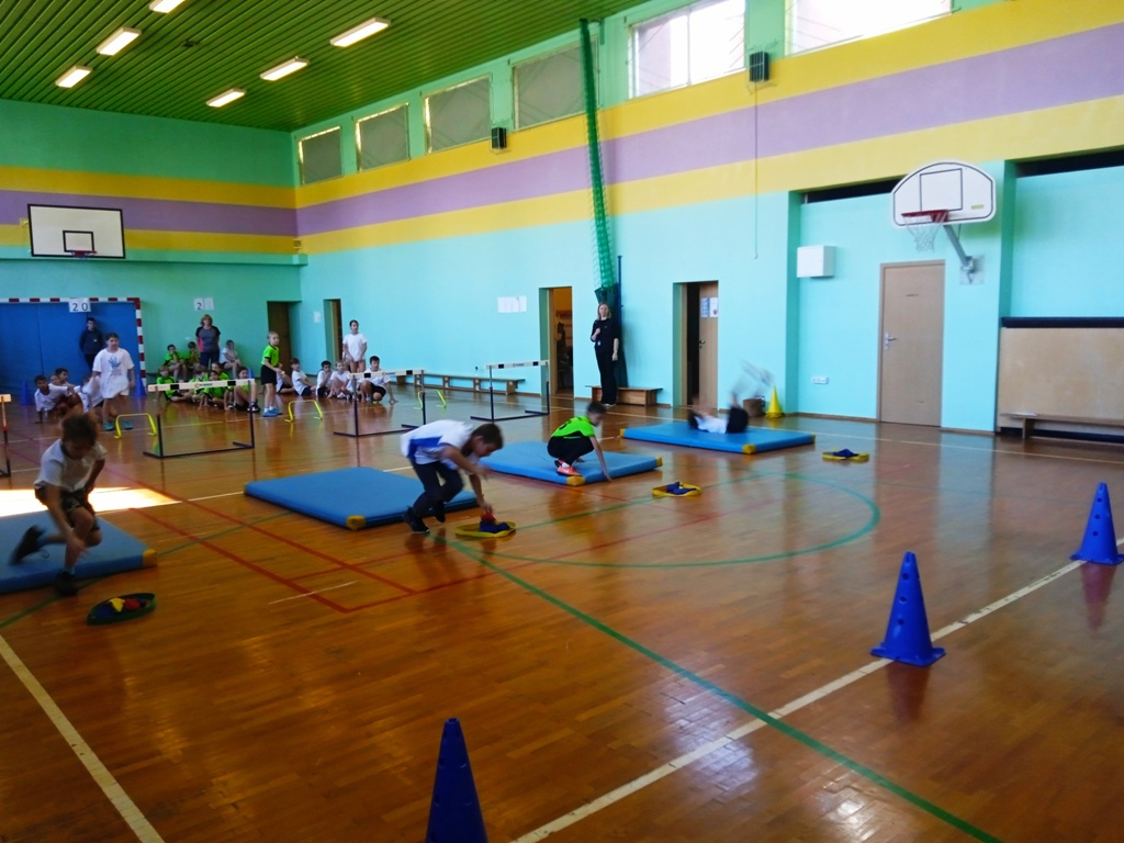 Rozpoczęliśmy aktywnym wtorkiem dla kl. I-III:- Wyścigi rzędów na wesoło i aerobikiem.