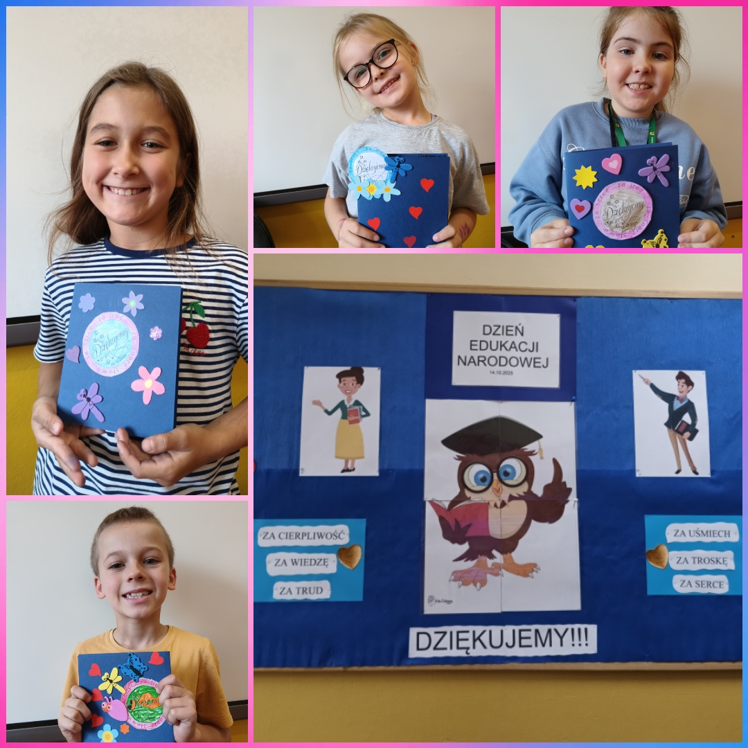 Każdego roku dnia 14 października obchodzimy DZIEŃ EDUKACJI NARODOWEJ, dzień święta wszystkich pracowników szkoły. Z tej okazji Świetliczaki zrobiły przepiękne laurki 3D 🙂