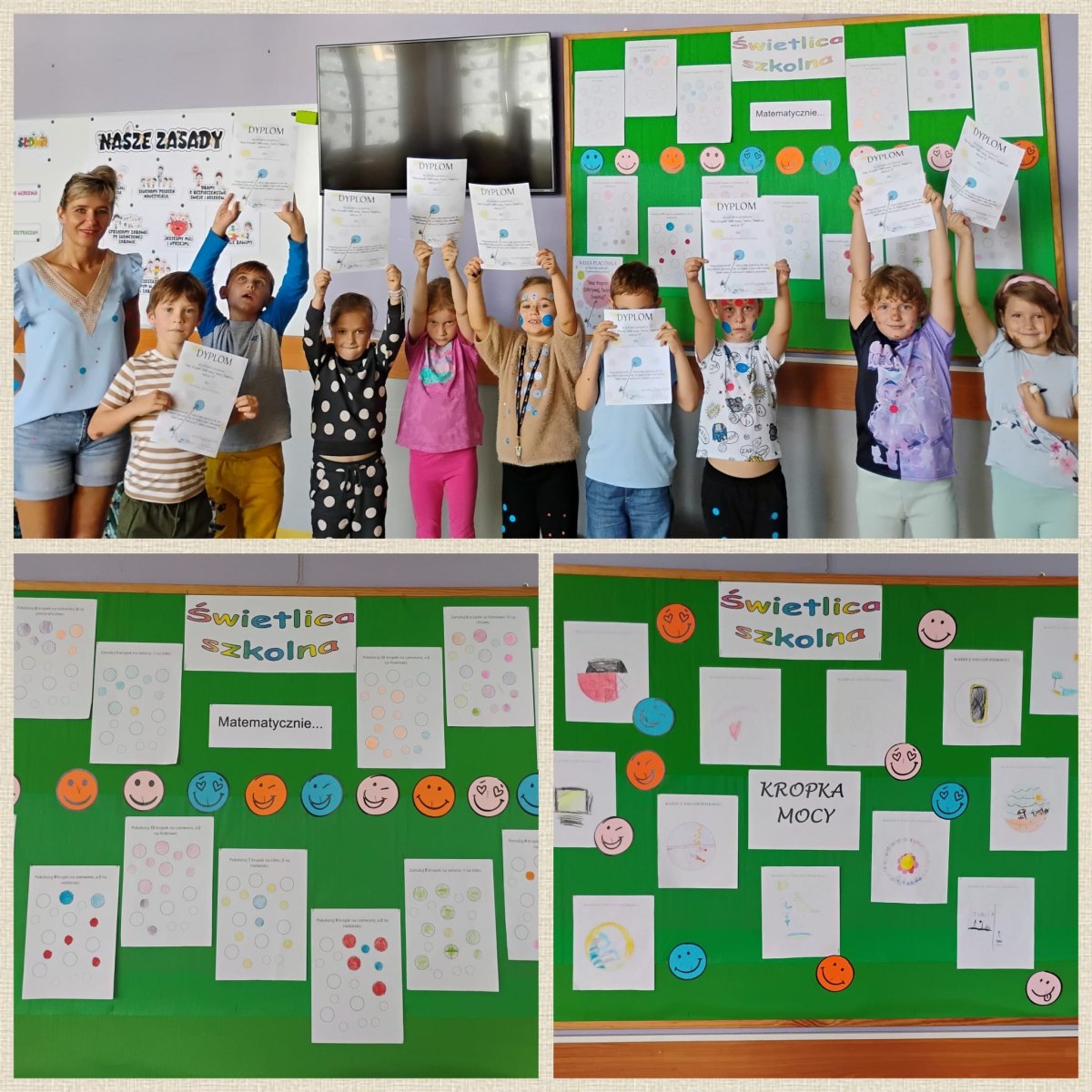 W świetlicy szkolonej  celebrowaliśmy ten dzień… cały tydzień. Rozpoczęliśmy od poznania słynnej na całym świecie głównej bohaterki filmu pt. „ KROPKA” Vashii i idąc jej śladem powstały przepiękne dzieła oraz mnóstwo ruchowej zabawy 🙂