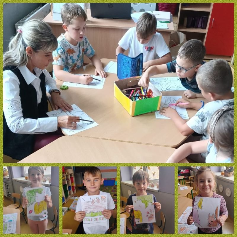 Podczas zajęć plastycznych uczniowie przygotowali, wraz z bohaterami bajki zasady bezpieczeństwa na kolorowej planszy.