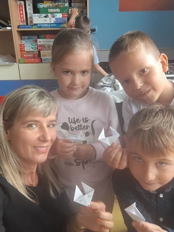 Nastały pochmurne, jesienno – zimowe popołudnia. W świetlicy szkolnej humor poprawiają nam chwile spędzone na słuchaniu książek czytanych przez wychowawców. Dzieci lubią Basię i jej rodzinkę – bohaterów serii książek Zofii Staneckiej. Uczymy się też, jak dbać o książki. Tym razem robiliśmy wesołe zakładki – zwierzątka. Do ich wykonania wykorzystaliśmy technikę origami.