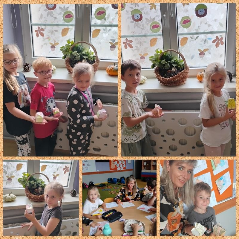 Następnie Świetliczaki ozdobiły tekturowe jabłuszka bibuła i pokolorowały kosze pełne jabłek oraz jabłkowe witraże, a na koniec była miła niespodzianka FOTO RAMKA :), którą sprawiła naszym milusińskim naprawdę dużo radości.