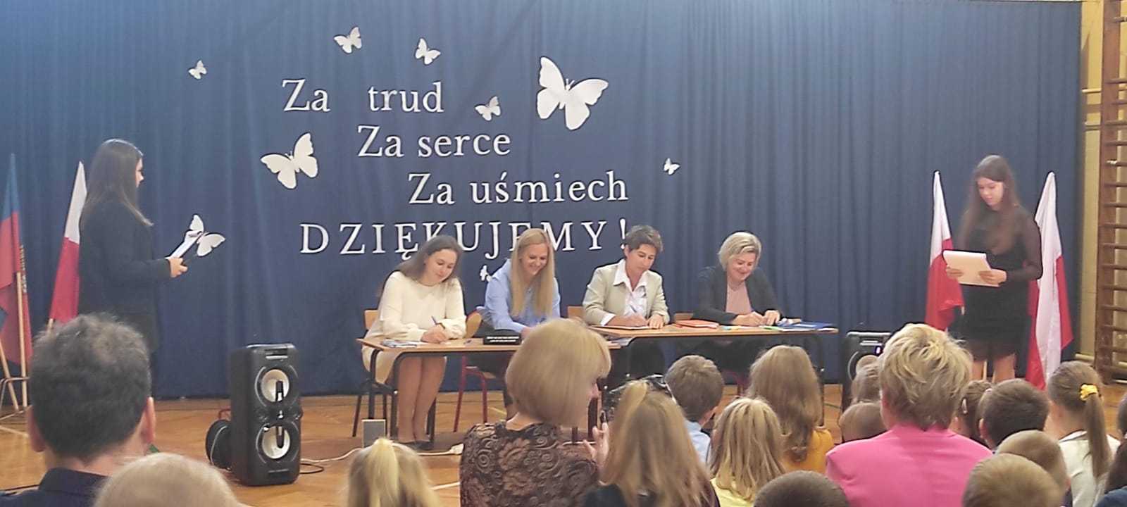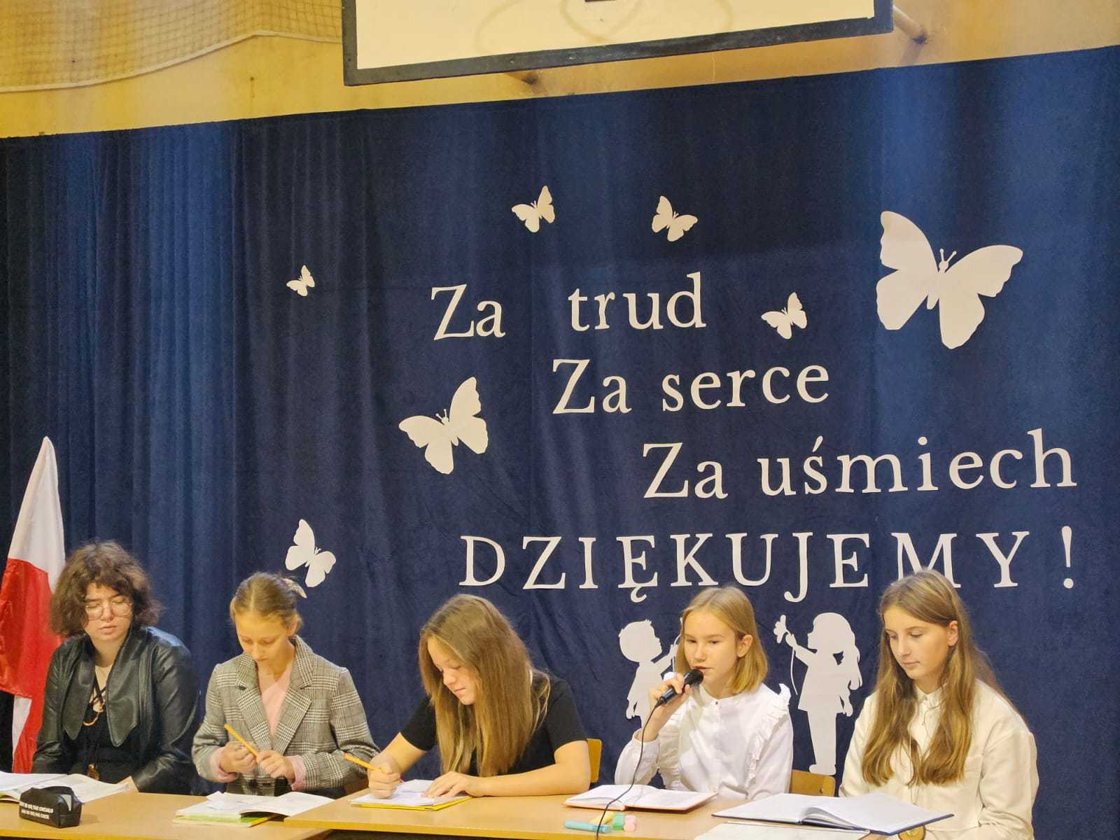 13 października 2023r. w naszej szkole odbyła się akademia z okazji Dnia Edukacji Narodowej💐 O część artystyczną zadbał Samorząd Uczniowski wraz z Kołem Teatralnym😍 Klasa 6 zaprezentowała się z utworem „Czternastego października”. Uczniowie przygotowali również quiz zarówno dla nowych Nauczycieli, jak i tych,którzy wrócili do nas po dłuższej nieobecności👩‍🏫🧑‍🏫 Wszystkim Nauczycielom oraz Pracownikom naszej szkoły serdecznie DZIĘKUJEMY… za trud, serce i każdy uśmiech💐❤️ 🙂