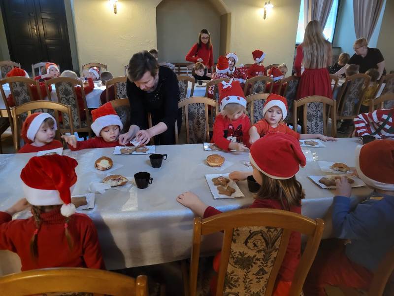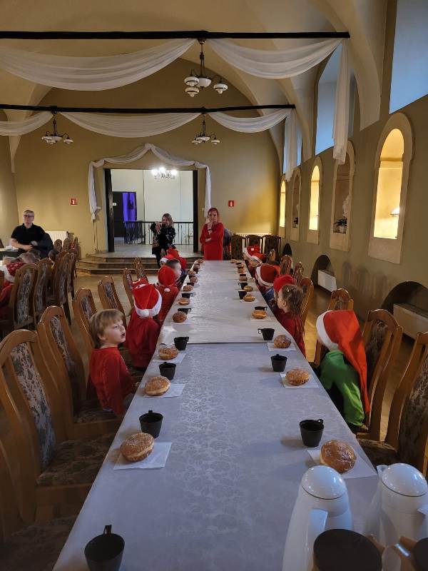 1 grudnia przedszkolaki z grupy Motylków i Kubusiów  wyjechały do Toszka, gdzie na Zamku spotkały się ze Świętym Mikołajem. Zaraz po przyjeździe dzieci zostały przywitane przez bardzo miłe panie, które zaprosiły wszystkich na słodki poczęstunek i gorącą herbatę. Potem była zabawa  przy muzyce i nie tylko. Po wspaniałej zabawie zawitał do nas niecierpliwie oczekiwany gość – Święty Mikołaj, który rozdał wszystkim dzieciom upominki. Radości było co niemiara. Potem czekała na dzieci jeszcze jedna niespodzianka – ozdabianie Bożonarodzeniowych pierniczków, które oczywiście przedszkolaki zabrały do domu. Wszyscy świetnie się bawili i w doskonałych humorach wrócili do przedszkola. Myślę, że te Mikołajki na długo pozostaną w naszej pamięci! 🙂