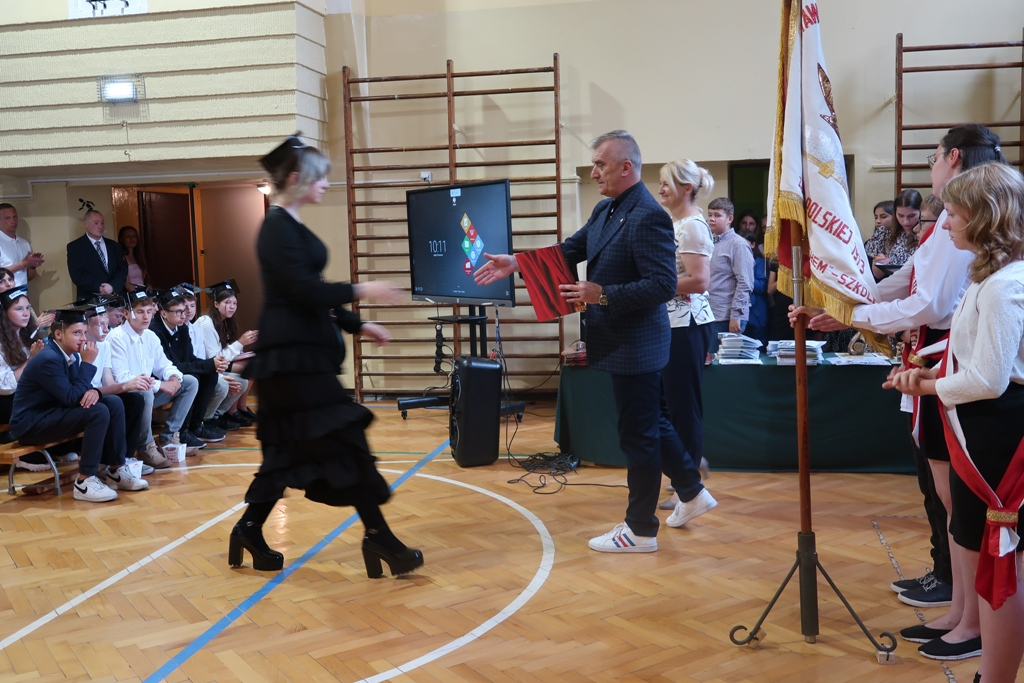 W częściach oficjalnych przy sztandarze szkolnym odśpiewaliśmy Hymn Państwowy. Nastąpiła też zmiana Pocztu Sztandarowego.
